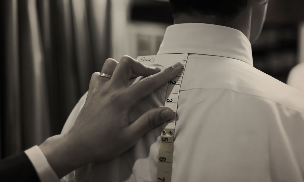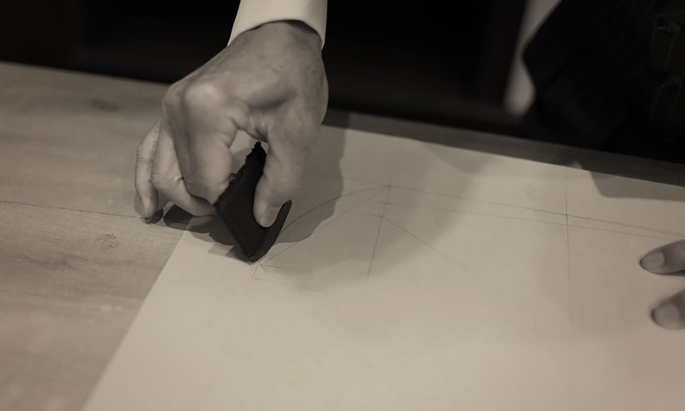採寸〜型紙作り〜仮縫い〜ご試着〜補正〜本縫い〜検品、そして最後の納品に至るすべての過程において、
